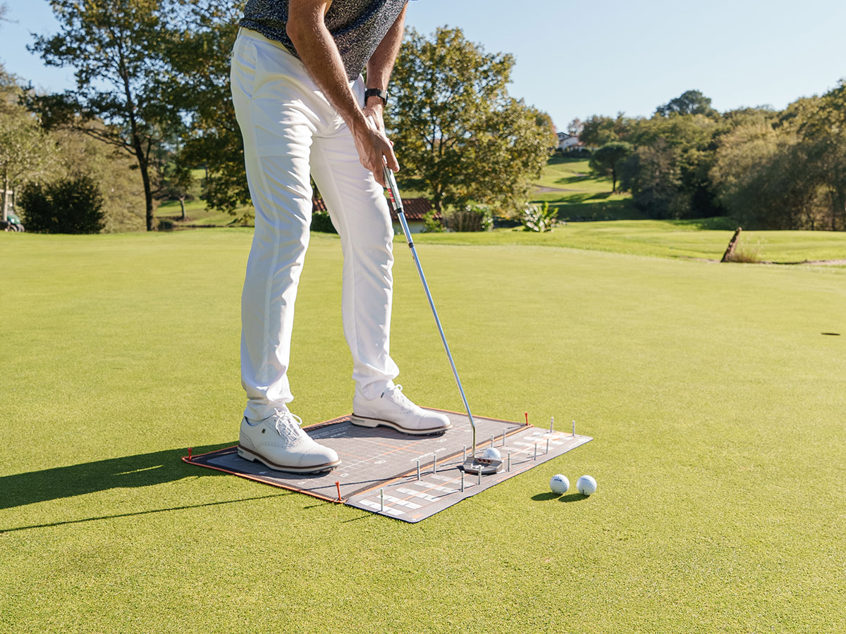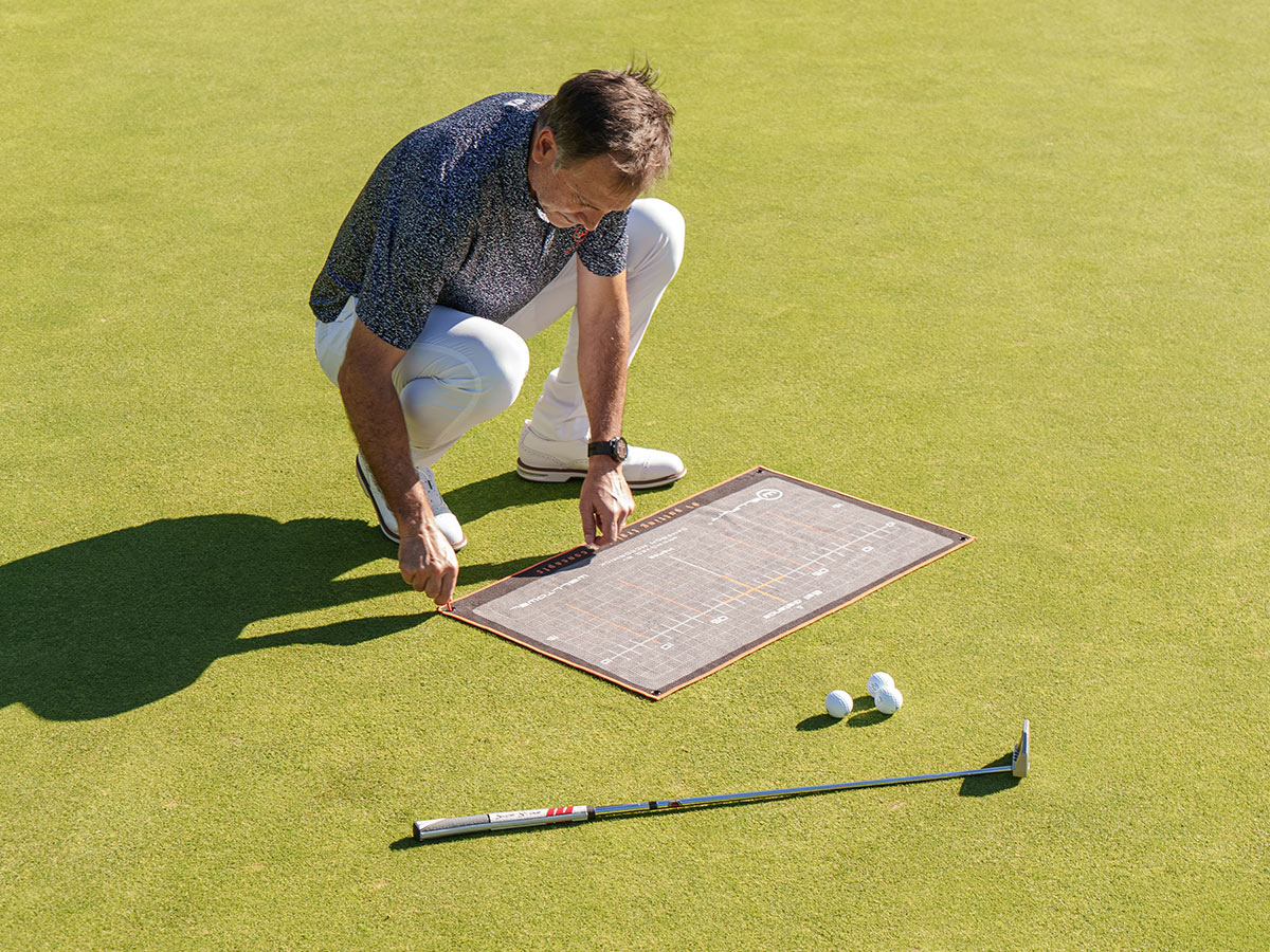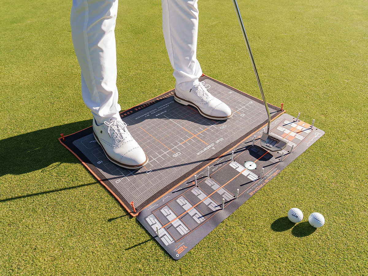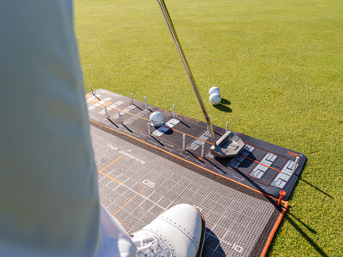 The Welltowel functions as a classic towel for cleaning your clubs and also features a stance grid to enhance consistency and alignment during your putting practice, offering versatile functionality for your game.